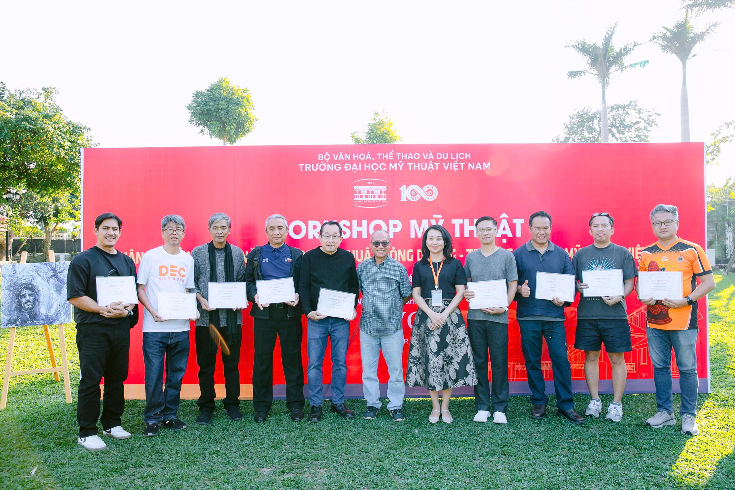 Ngày 16 tháng 11 năm 2025 đánh dấu một sự kiện nghệ thuật và học thuật quốc tế đặc biệt: Workshop Giao lưu Văn hóa và Sáng tạo do Trường Đại học Mỹ thuật Việt Nam (VUFA) tổ chức, quy tụ các nghệ sĩ, học giả đến từ Trường Đại học Mỹ thuật Việt Nam, Trường Đại học Mỹ thuật Thành phố Hồ Chí Minh, các trường nghệ thuật tại Thái Lan, Lào. Diễn ra tại không gian nghệ thuật và văn hóa độc đáo tại HaVy Garden, Ba Vì, Hà Nội. Sự kiện này không chỉ là nơi chia sẻ kiến thức chuyên môn mà còn là cầu nối gắn kết hoạt động sáng tác của các nghệ sĩ trong nước và trong khu vực. Với chủ đề tập trung vào sự giao thoa giữa Nghệ thuật Truyền thống và Thực hành Đương đại, Workshop mang lại những trải nghiệm đầy hứng khởi cho các nghệ sĩ tham gia