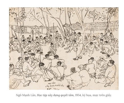 · The Fine Arts College (1945-1957) – The Transition from Indochinese Fine Arts to Revolutionary Fine Arts for the Resistance (including works from the 1945-1946 period and the Resistance Course, featuring sketches from the collection of artist Ngô Mạnh Lân’s family);