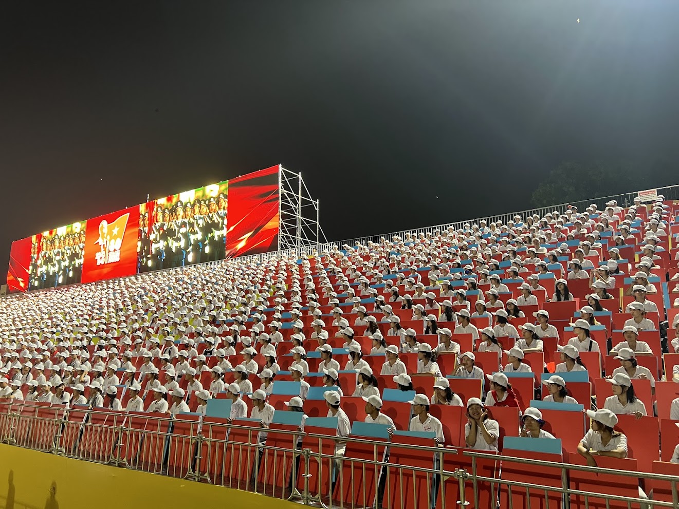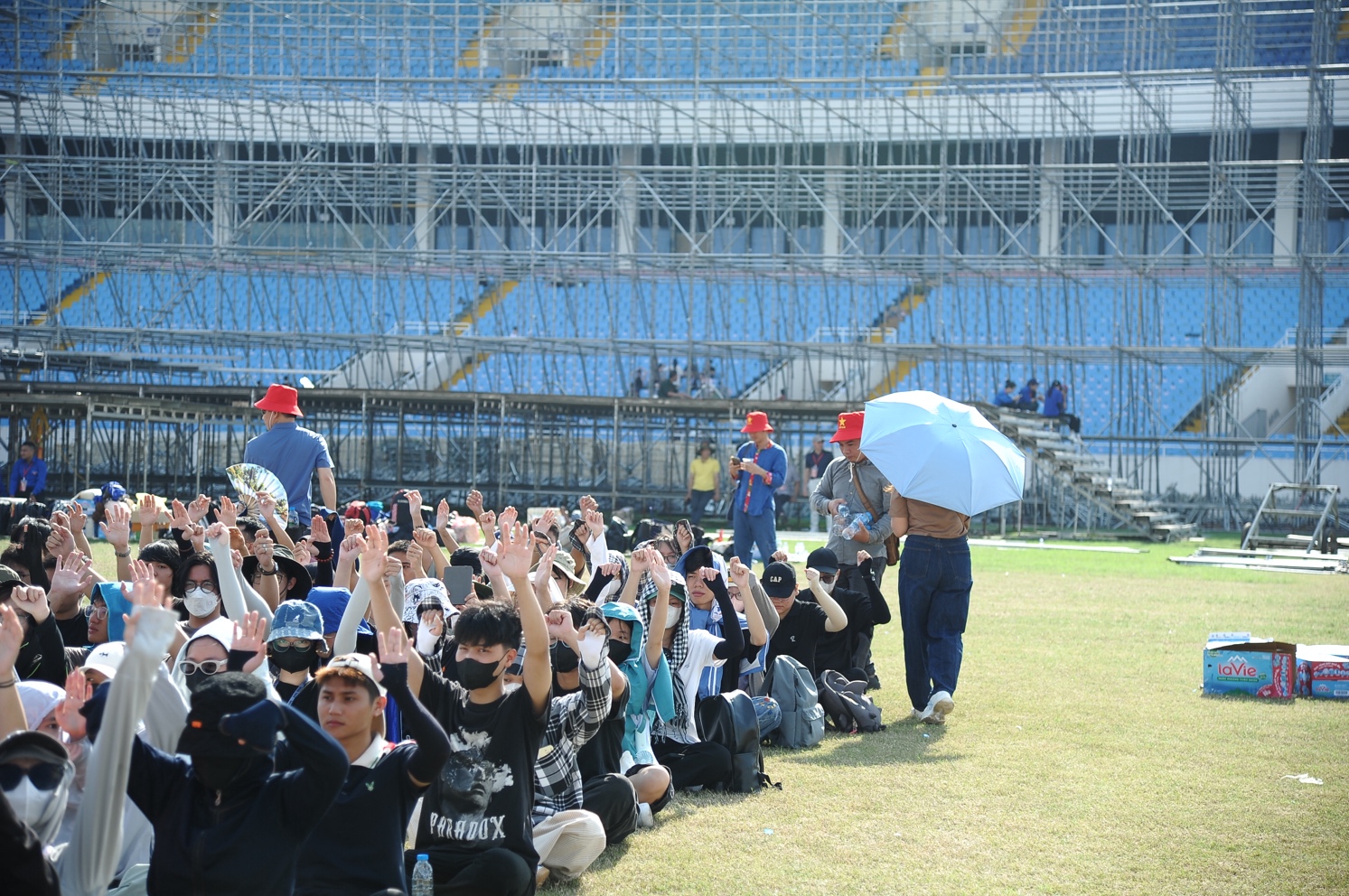 Từ ngày 18/8 đến ngày 24/8/2025, chuỗi ngày tập luyện tại Sân Vận động Mỹ Đình thực sự là thử thách cam go với thầy, cô và sinh viên Trường Đại học Mỹ thuật Việt Nam. Đây là quãng thời gian mưa nắng thất thường, thậm chí có thể nói là khá khắc nghiệt với sức khỏe của sinh viên tham dự tập luyện. Đã có không ít trường hợp ngất xỉu, ốm sốt phải xin nghỉ, bỏ tập luyện giữa chừng. Nhưng có cả những trường hợp, vì lo lắng đến thể trạng, tinh thần của sinh viên, thầy, cô động viên nghỉ tập luyện, nhưng các bạn vẫn quyết tâm tiếp tục thực hiện nhiệm vụ, nhắn tin, gọi điện năn nỉ được quay trở lại cùng các bạn, cùng Nhà trường.