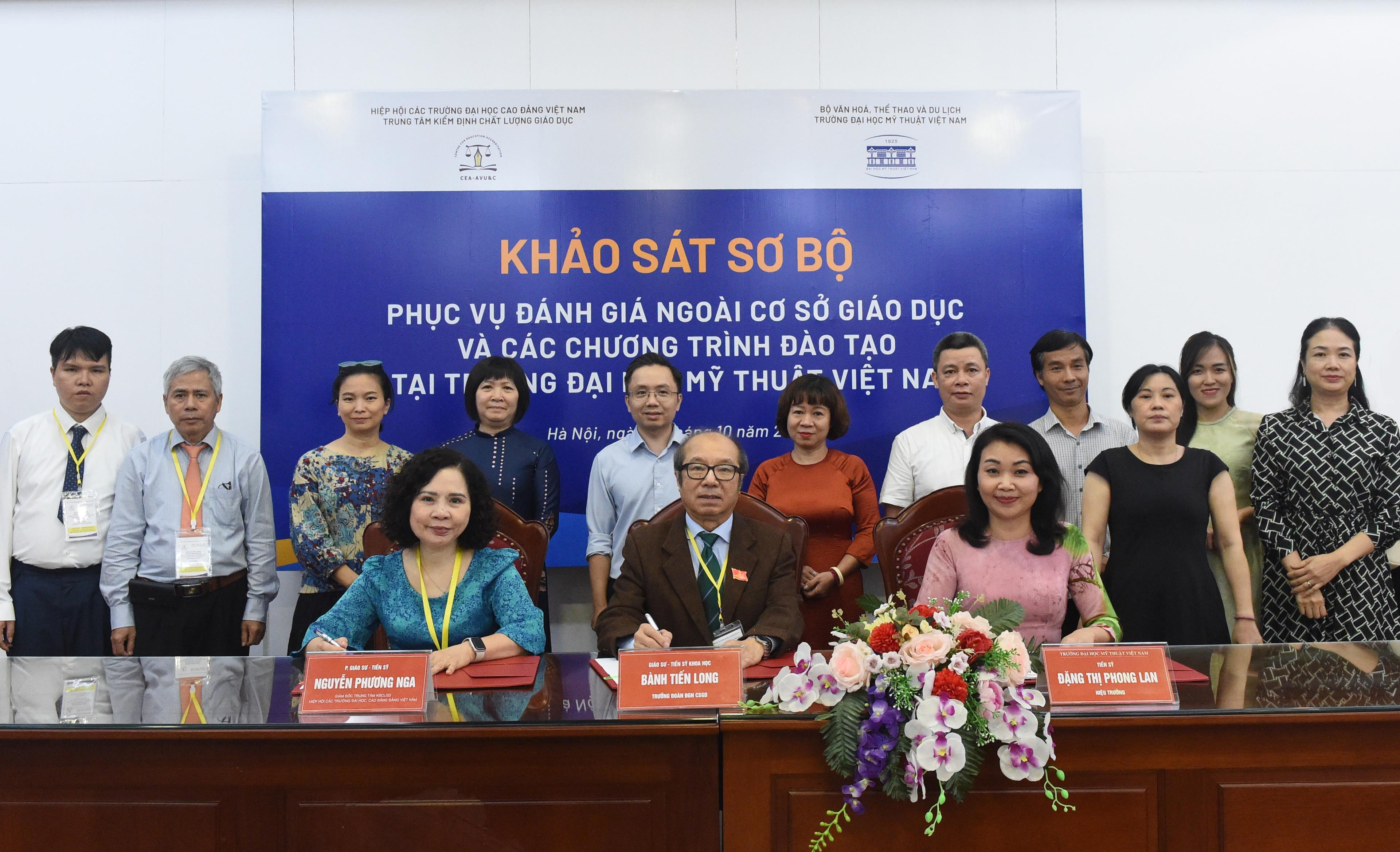 Kết thúc chương trình khảo sát sơ bộ, Trưởng Đoàn chuyên gia ĐGN và Hiệu trưởng Trường Đại học Mỹ thuật Việt Nam đã cùng ký Biên bản khảo sát sơ bộ tại Trường. Thời gian khảo sát chính thức của Đoàn chuyên gia ĐGN tại Trường được thống nhất sẽ bắt đầu từ ngày