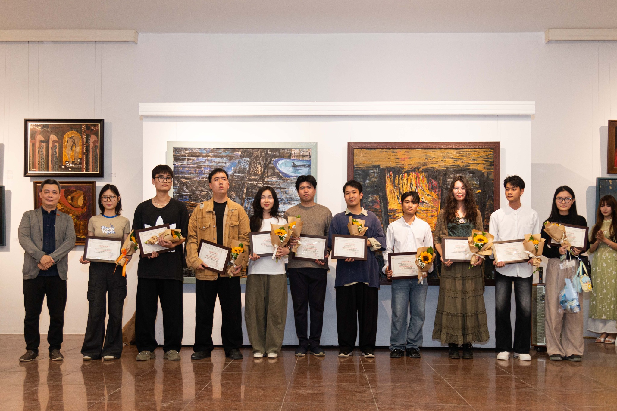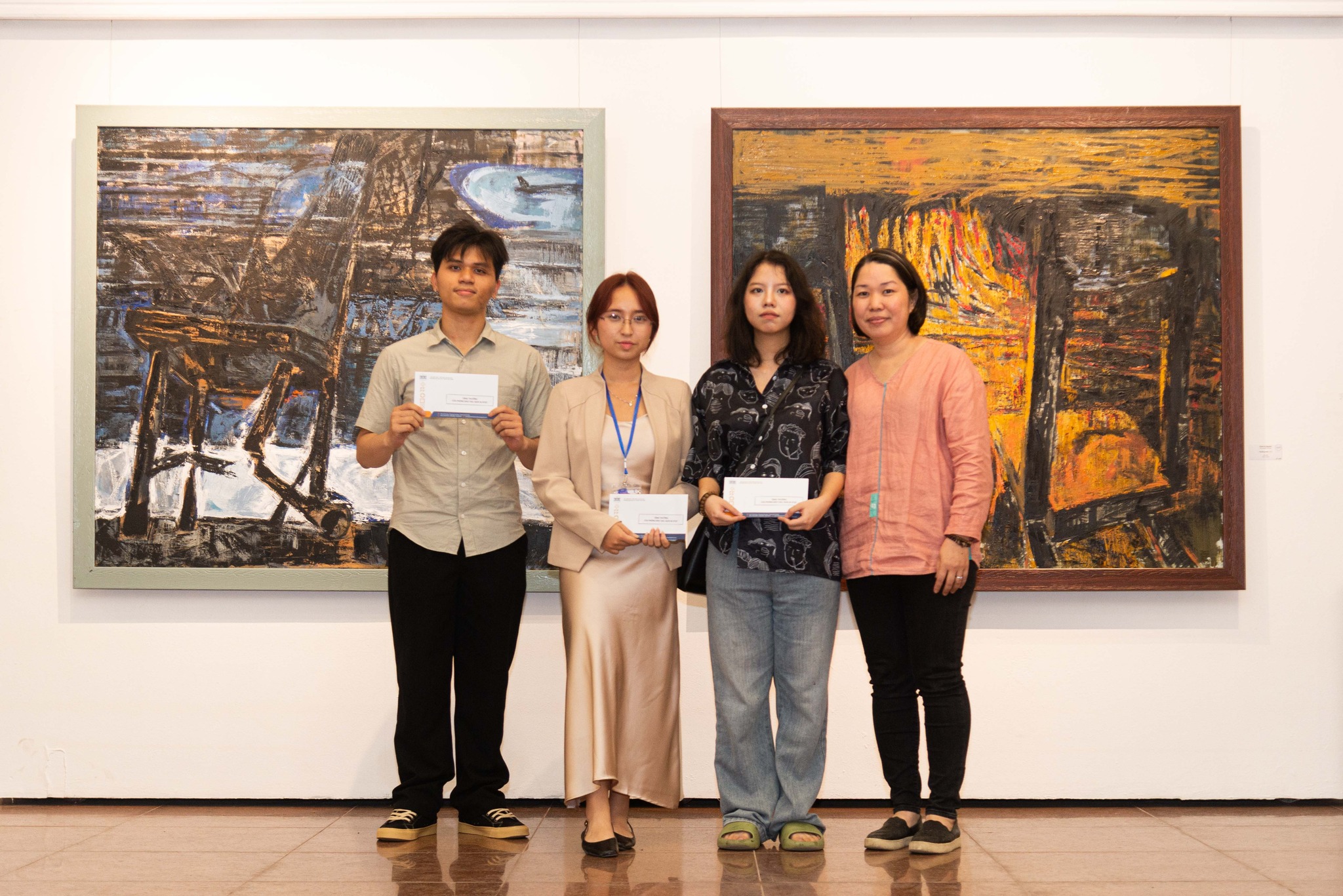 Đại diện Họa phẩm Sơn mài HD trao tặng thưởng cho các tác giả