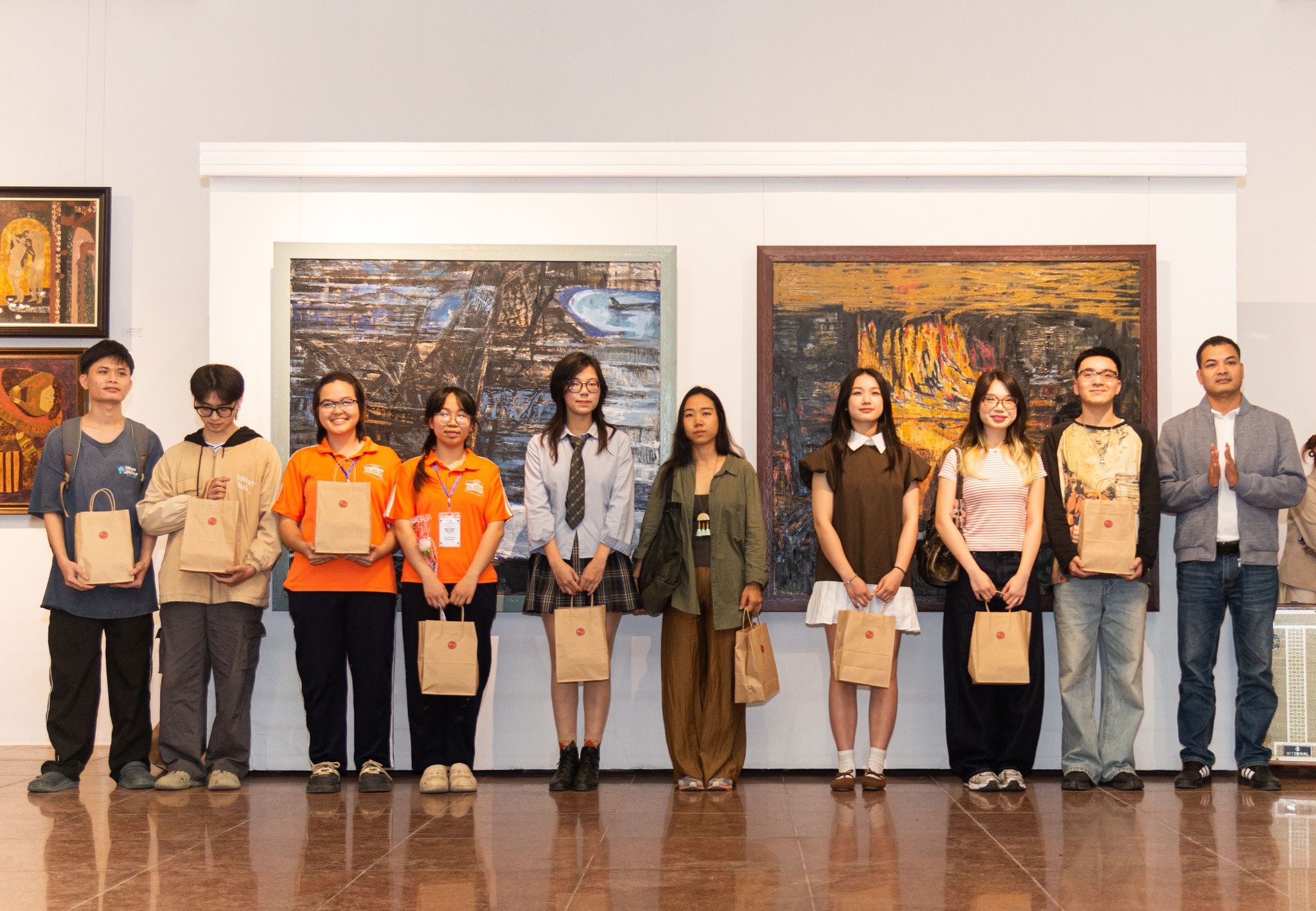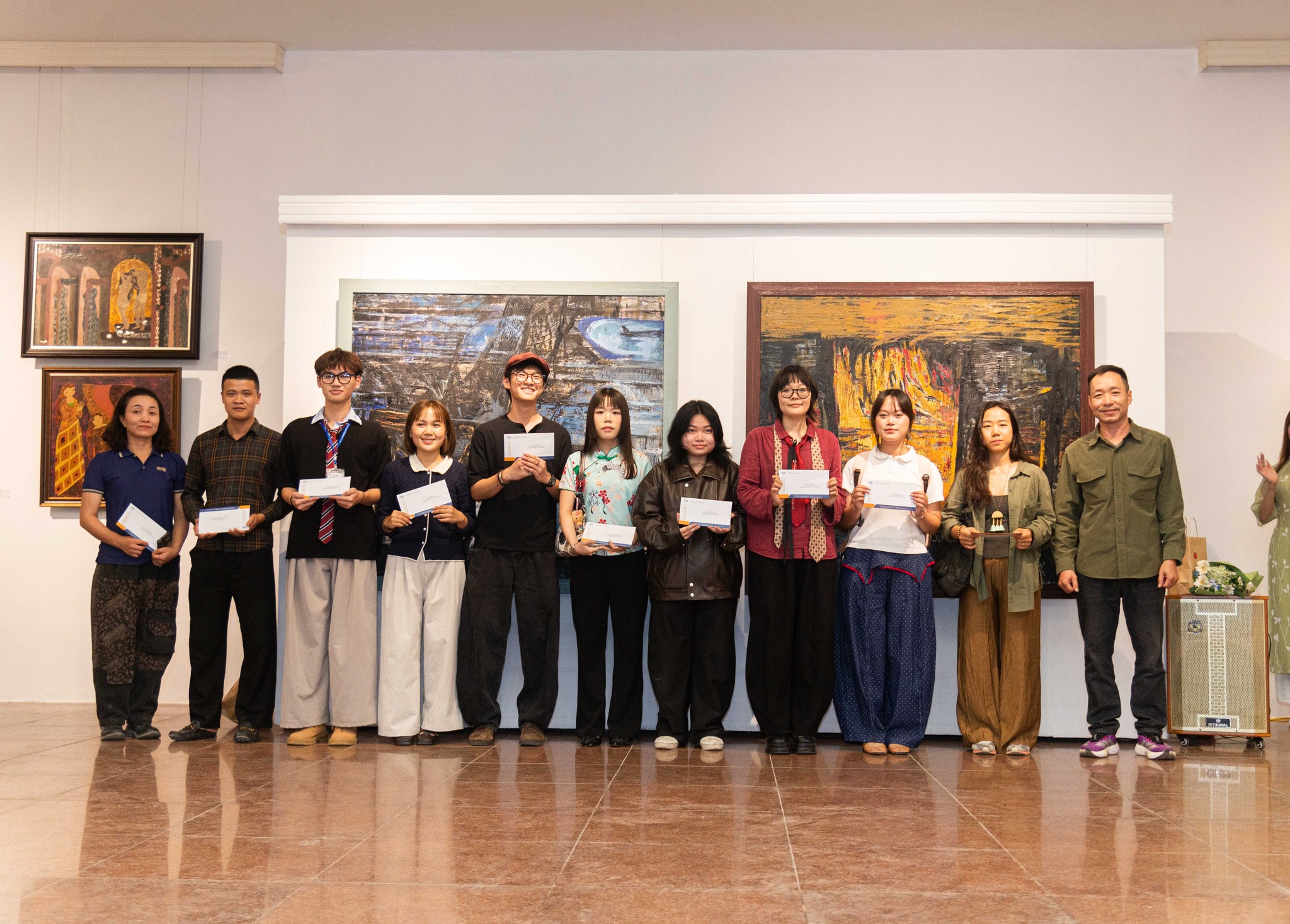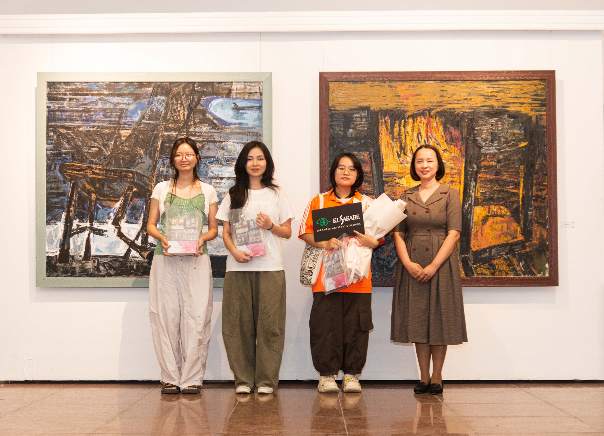 Đại diện Nhãn hàng họa phẩm Kusakabe (Công ty TNHH Trí Minh) trao tặng thưởng cho các tác giả