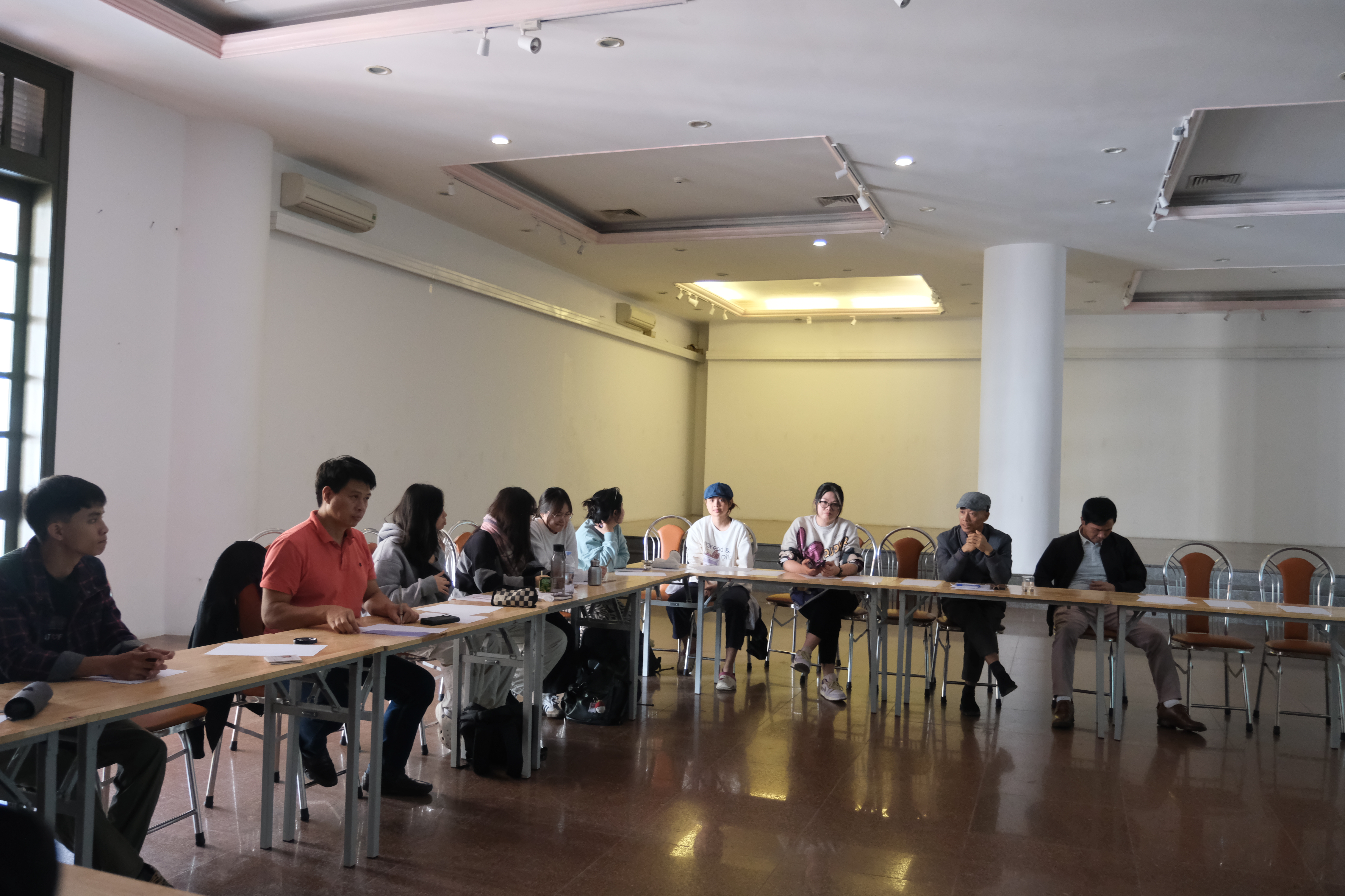 *Sự tham gia của 14 sinh viên khoa Đồ họa tham gia Workshop đại diện cho các khóa học khác nhau của khoa Đồ họa, có nền tảng với đồ họa tranh in, minh họa, thiết kế truyền thông và nghệ thuật thị giác. Sự đa dạng này tạo nên một không gian đối thoại phong phú, giúp các sinh viên chia sẻ quan điểm, thử nghiệm kỹ thuật và phát triển ý tưởng cá nhân.