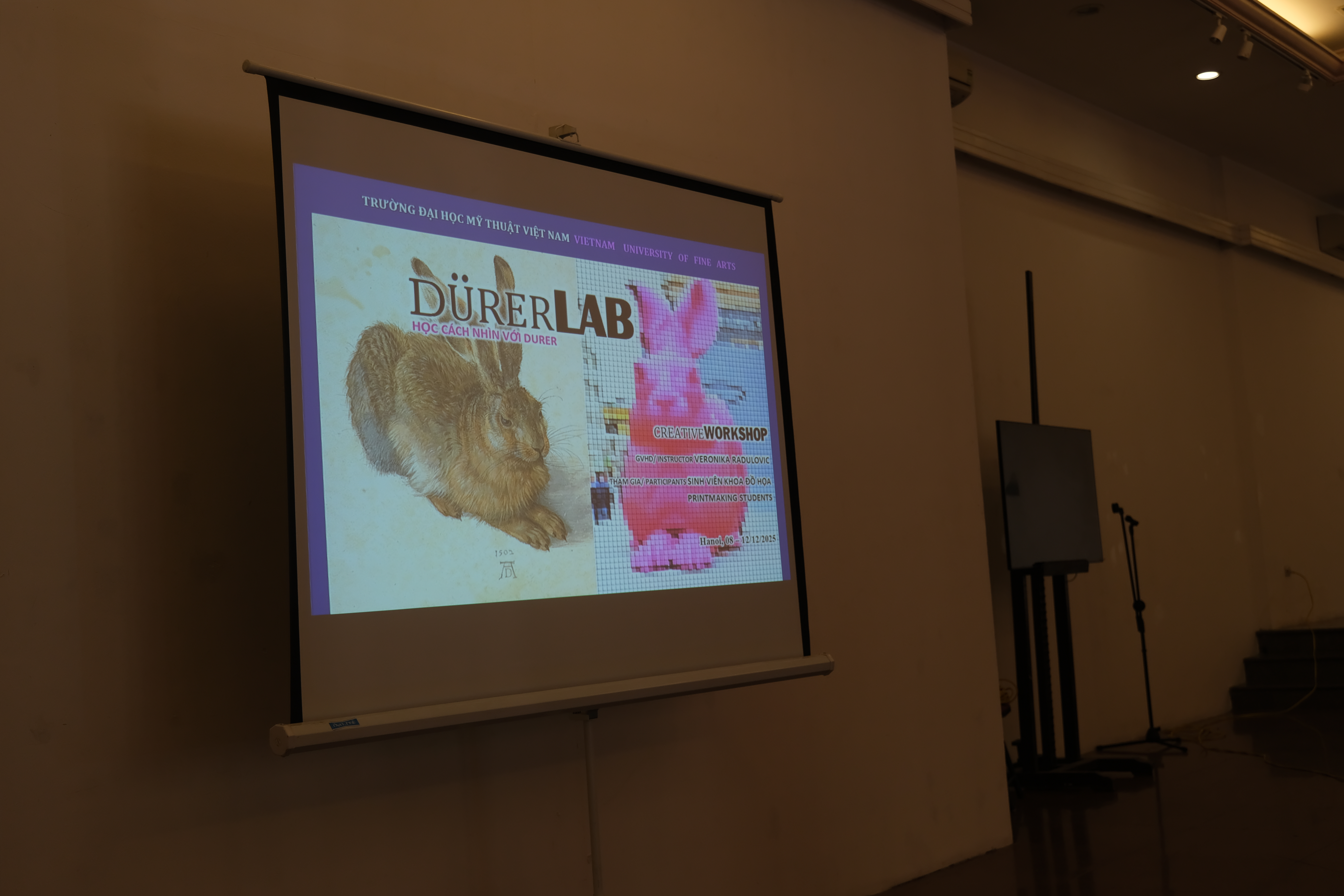 Từ ngày 8 đến 12 tháng 12 năm 2025, tại Trường Đại học Mỹ thuật Việt Nam đã diễn ra Workshop DürerLab – Học cách nhìn với Dürer, chương trình thực hành nghệ thuật thử nghiệm được dẫn dắt bởi nghệ sĩ người Đức Veronica Radulovic, với sự tham gia của 14 sinh viên khoa Đồ họa. Đây là một hoạt động học thuật – sáng tạo có ý nghĩa đặc biệt, được thiết kế nhằm tôn vinh tinh thần quan sát, tư duy hình họa, khả năng tự vấn và thao tác kỹ thuật từng làm nên tên tuổi của Albrecht Dürer, một trong những nghệ sĩ vĩ đại nhất của thời kỳ Phục Hưng Đức.