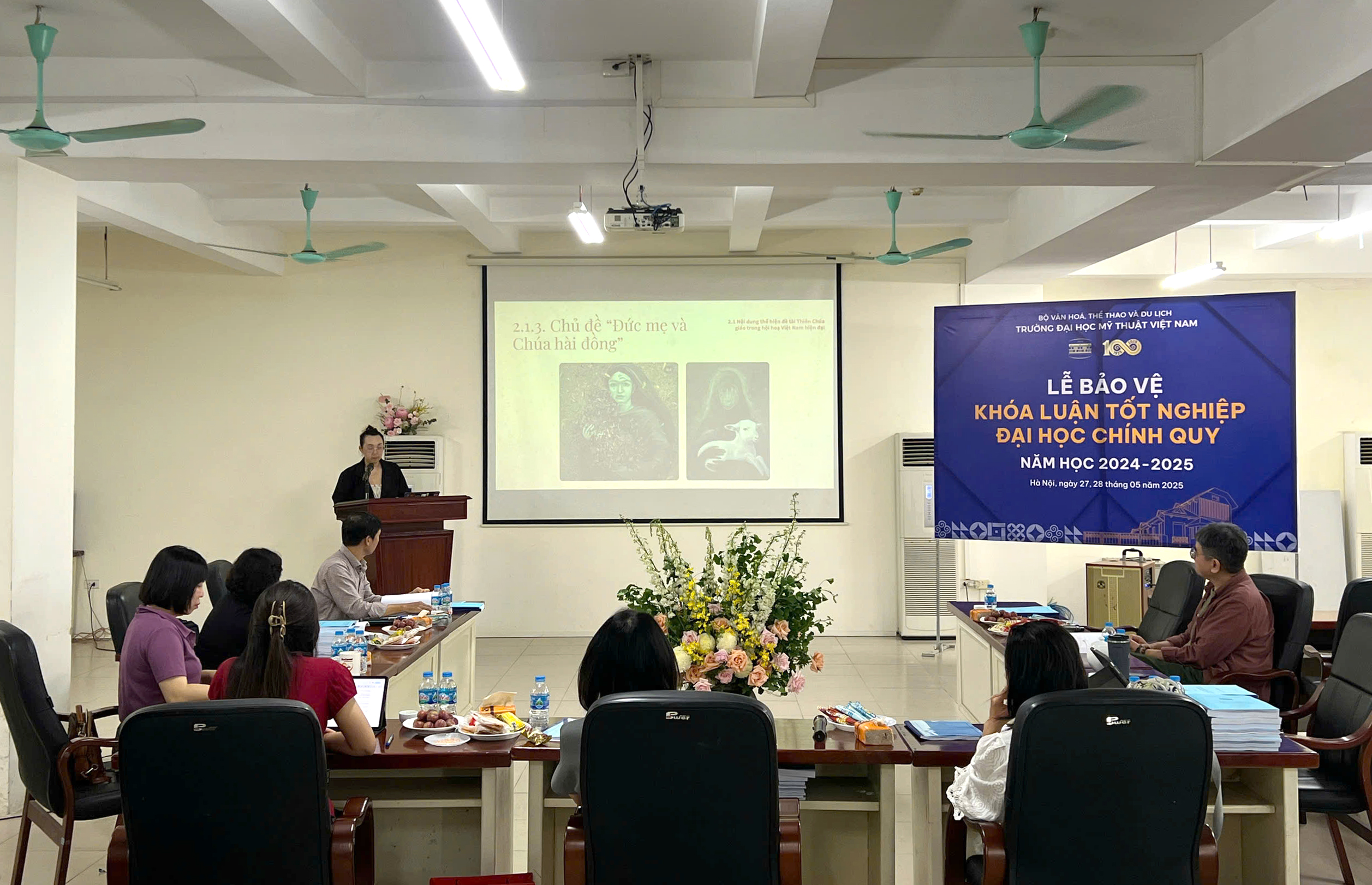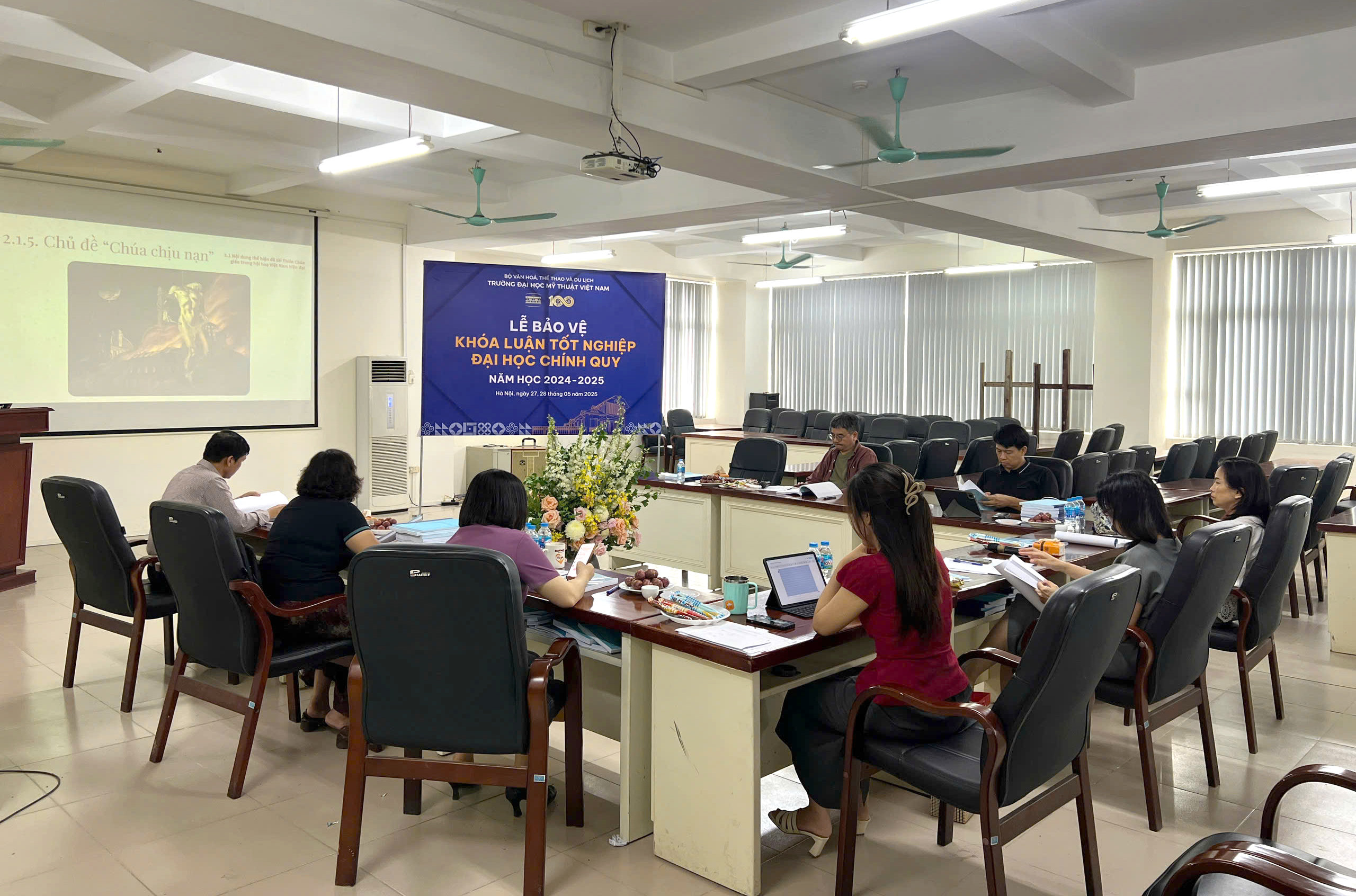 Ngày 27 và 28 tháng 5 năm 2025, tại Hội trường tầng 6, nhà F, số 42 Yết Kiêu,, Hoàn Kiếm, Hà Nội, lễ bảo vệ khóa luận tốt nghiệp của sinh viên các ngành Hội họa, Đồ họa, Thiết kế, Sư phạm Mỹ thuật và Lý luận, Lịch sử & Phê bình mỹ thuật đã được tổ chức thành công.