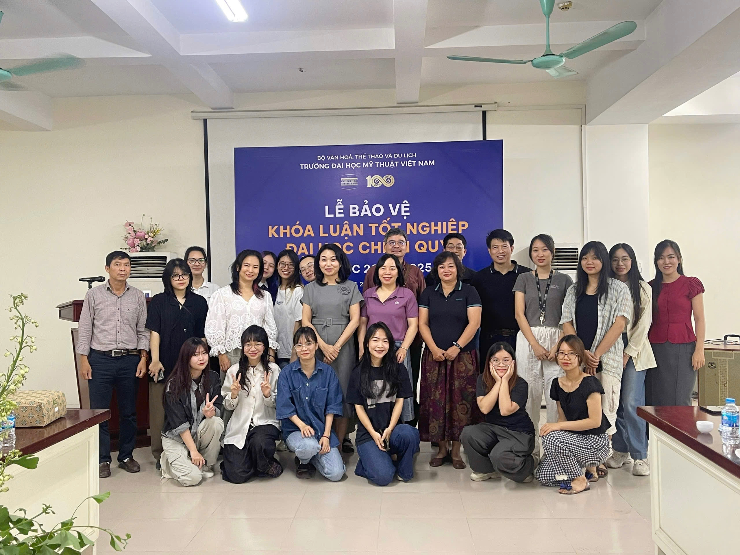 Đây không chỉ là cột mốc quan trọng đánh dấu sự trưởng thành của sinh viên mà còn là bước đệm để các em vững vàng bước vào môi trường nghề nghiệp và nghiên cứu chuyên sâu trong tương lai. Trường Đại học Mỹ thuật Việt Nam xin gửi lời chúc mừng đến các sinh viên đã hoàn thành tốt khóa luận tốt nghiệp và xin cảm ơn các giảng viên, cán bộ và toàn thể sinh viên đã phối hợp tổ chức thành công sự kiện này.