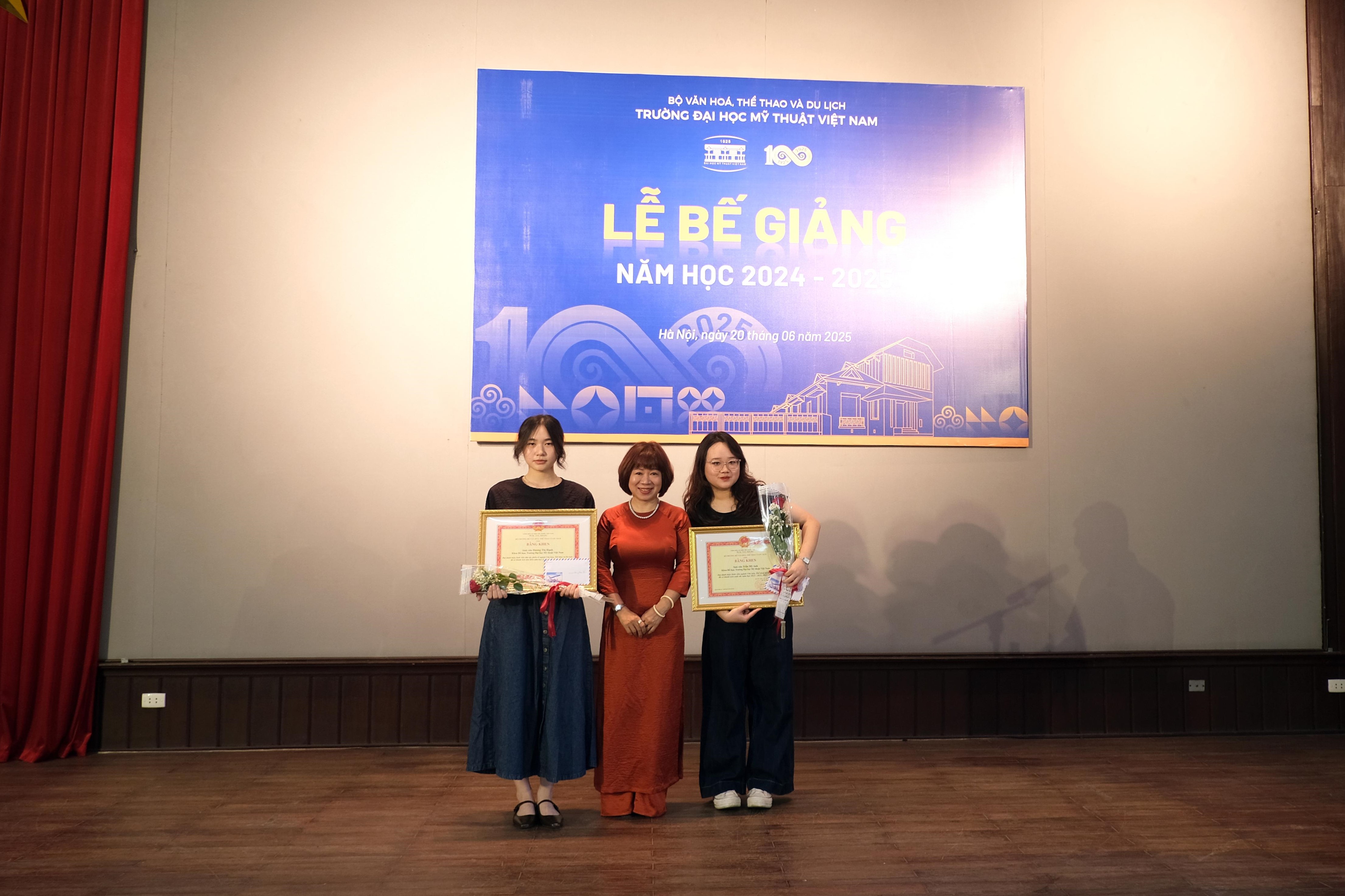 Sáng ngày 20/06/2025, Trường Đại học Mỹ thuật Việt Nam đã tổ chức Lễ bế giảng năm học 2024 - 2025 trong không khí trang trọng và ấm cúng. Buổi lễ là dịp để nhìn lại hành trình học tập, rèn luyện của sinh viên các ngành đào tạo và ghi nhận, tôn vinh những cá nhân, tập thể có thành tích xuất sắc trong năm học vừa qua.