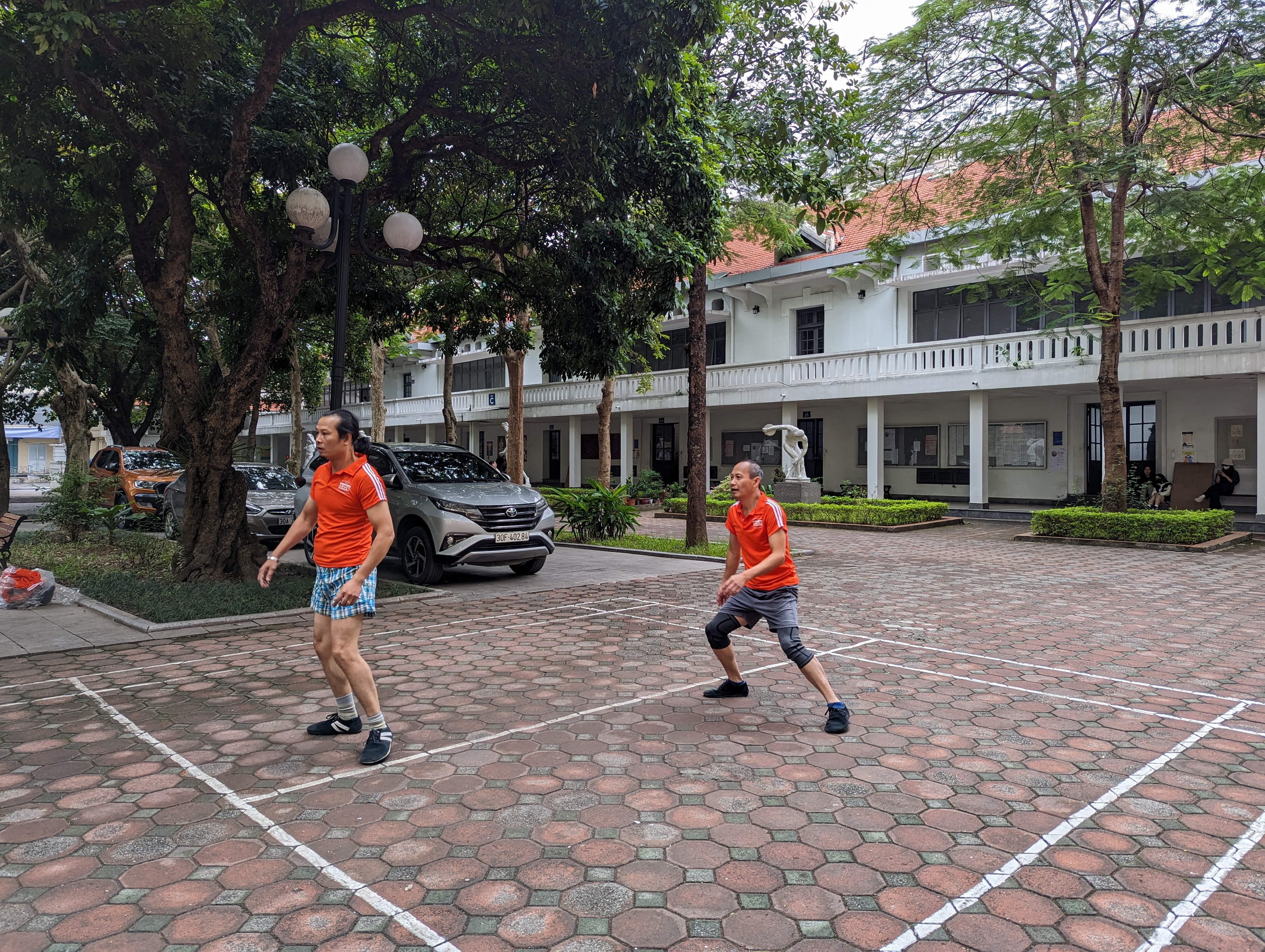 Là một trong những nội dung tiêu biểu và được nhiều cán bộ, giảng viên quan tâm nhất là nội dung thi đấu “Đá cầu đôi nam” dành cho đội ngũ giảng viên và người lao động của Nhà trường.