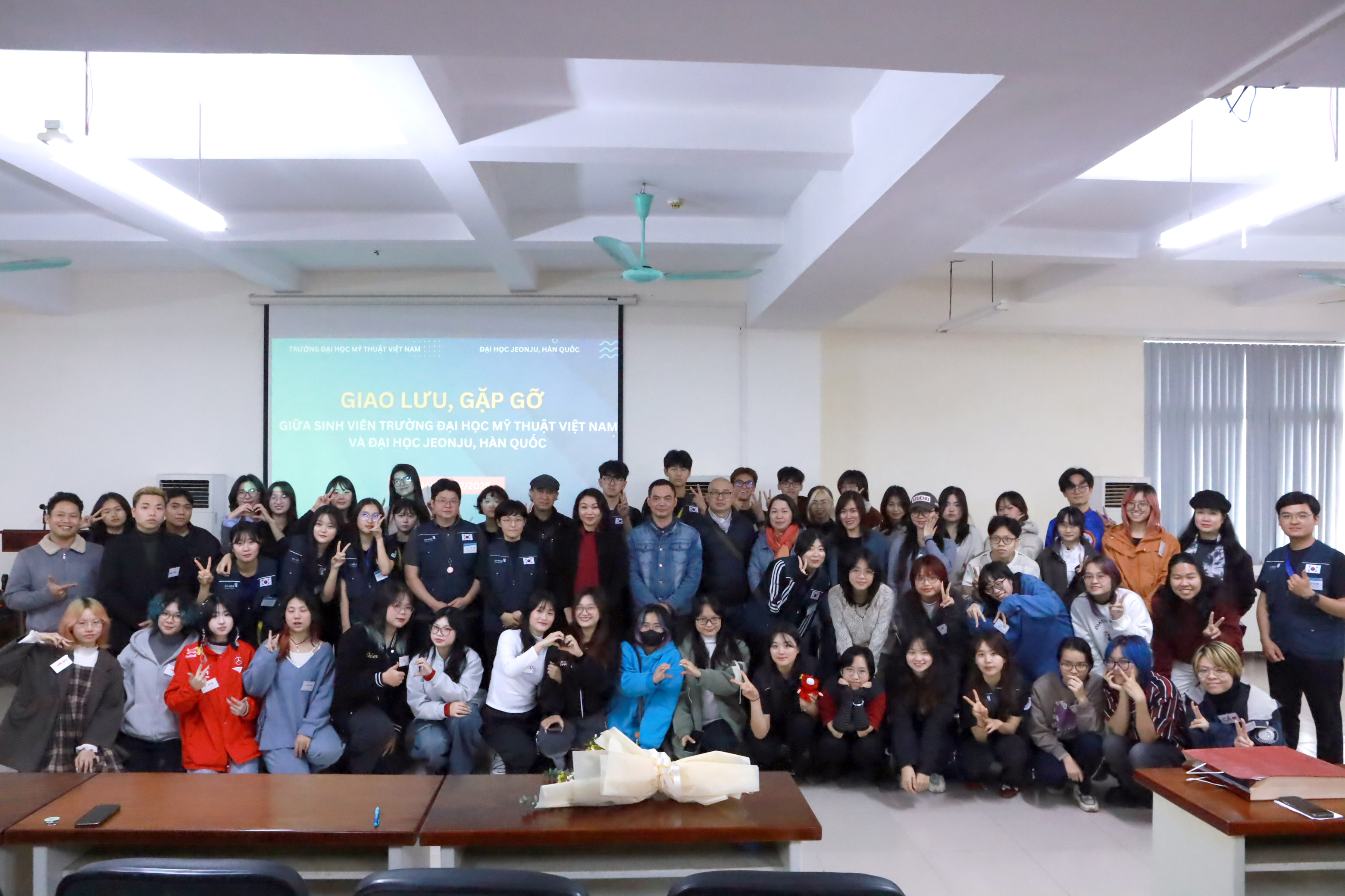 Nối tiếp thành công trong sự kiện giao lưu năm 2024, vào ngày 19/02/2025 vừa qua, trong không khí ấm áp của mùa xuân, Trường Đại học Mỹ Thuật Việt Nam phối hợp cùng Đoàn Thanh Niên Trường đã nhiệt liệt đón tiếp đại diện và các bạn sinh viên Trường Đại học Jeonju (Hàn Quốc) đến tham gia buổi giao lưu văn hoá giữa sinh viên hai trường. Đây là cơ hội để sinh viên hai nước Việt Nam - Hàn Quốc tìm hiểu thêm về truyền thống, văn hóa và nghệ thuật của mỗi quốc gia.