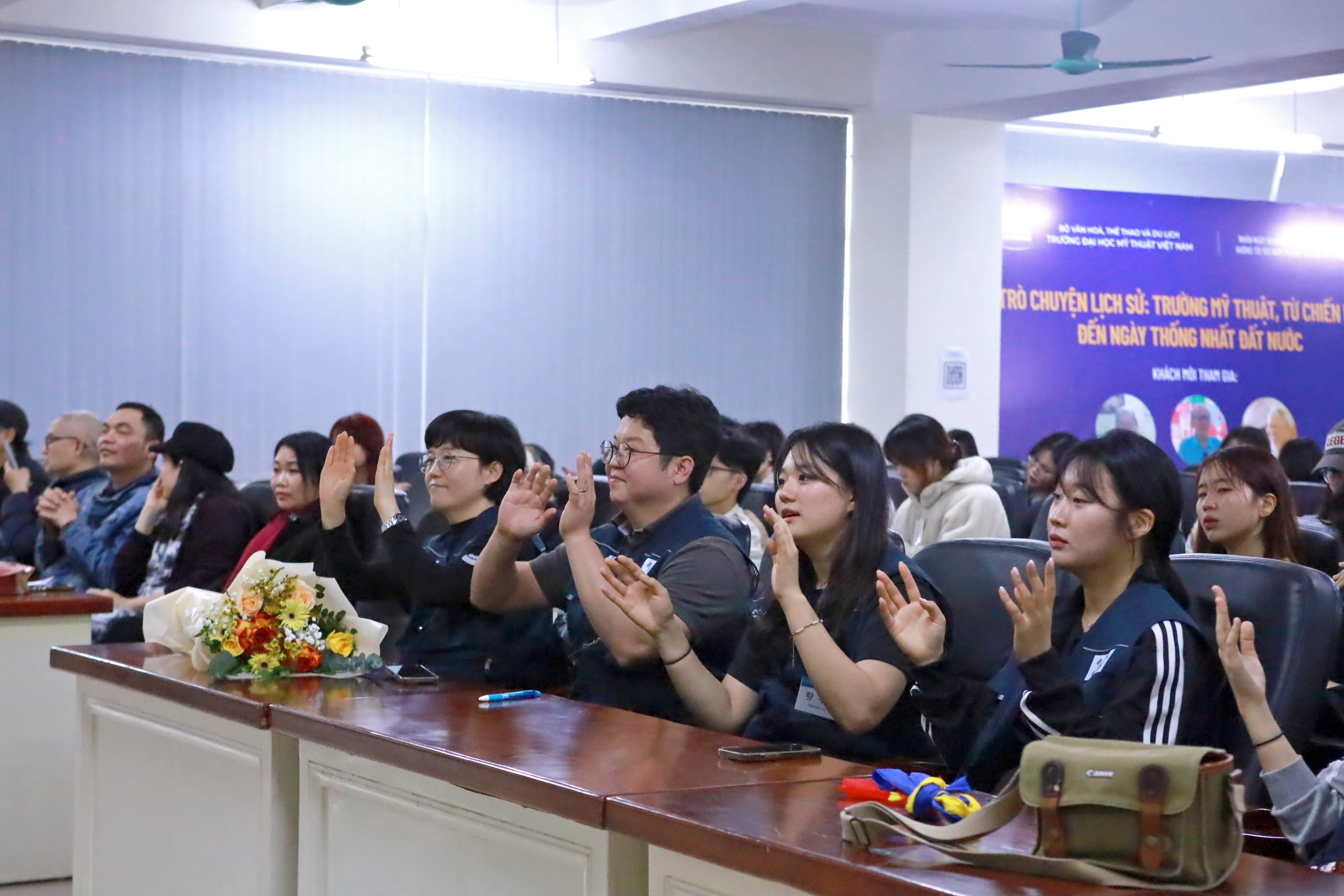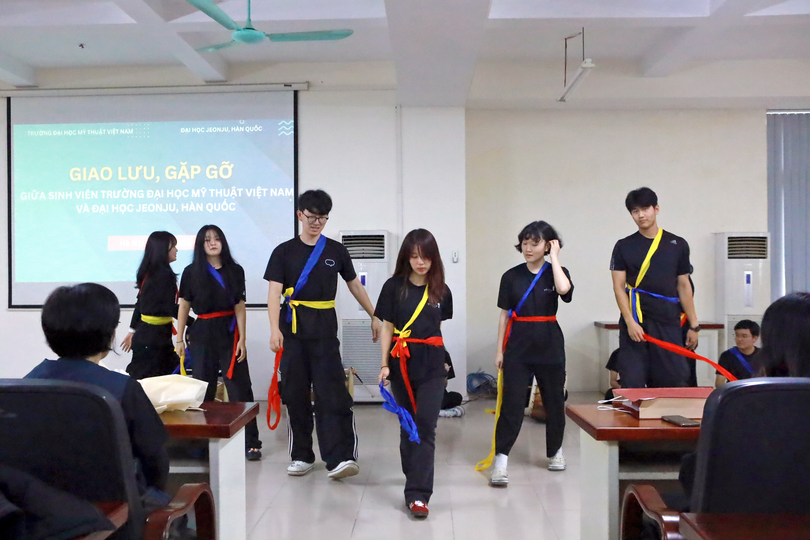 Sinh viên Trường Đại học Jeonju hoà chung nhịp điệu với các tiết mục biểu diễn của sinh viên Trường Đại học Mỹ thuật Việt Nam