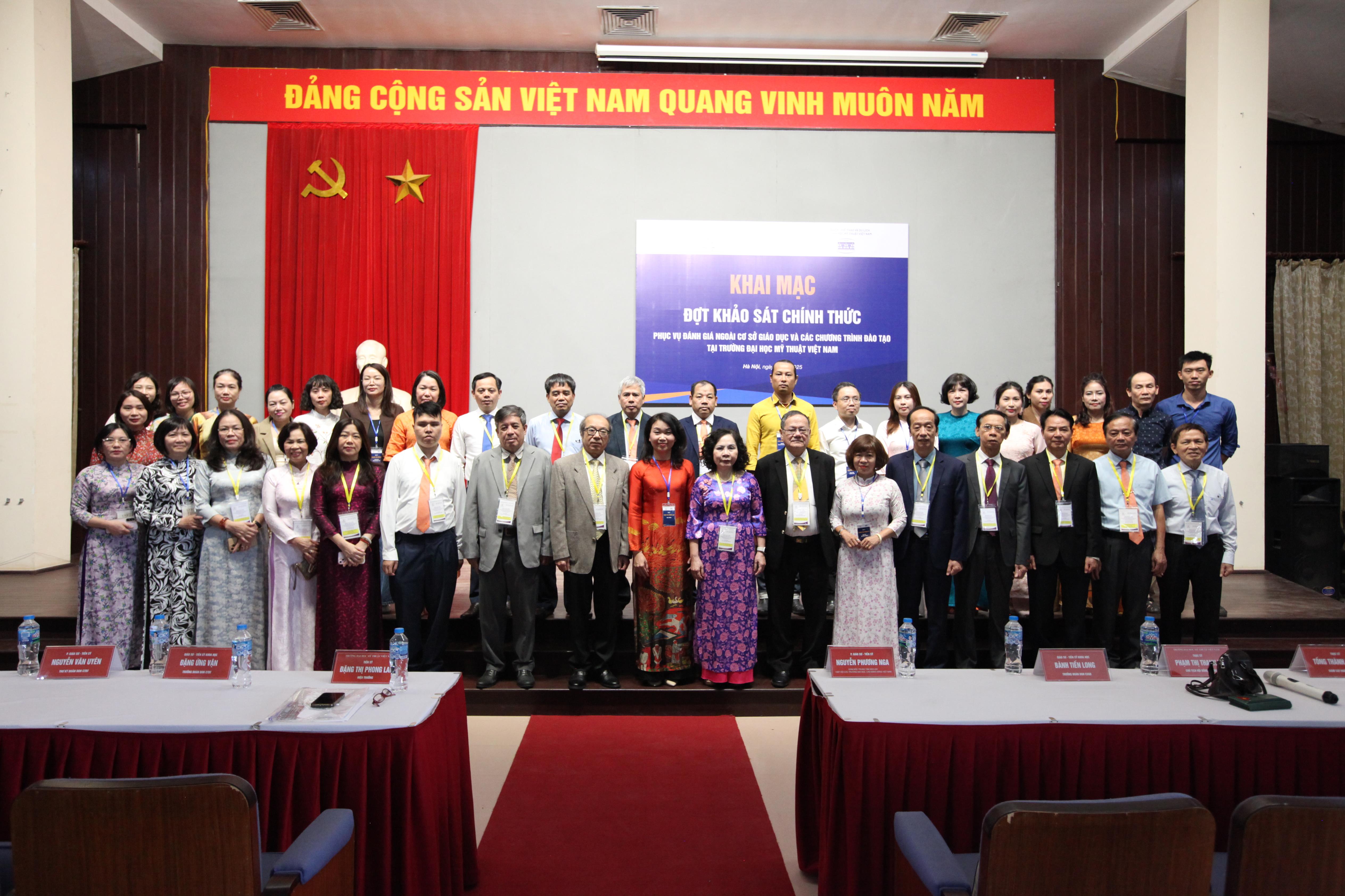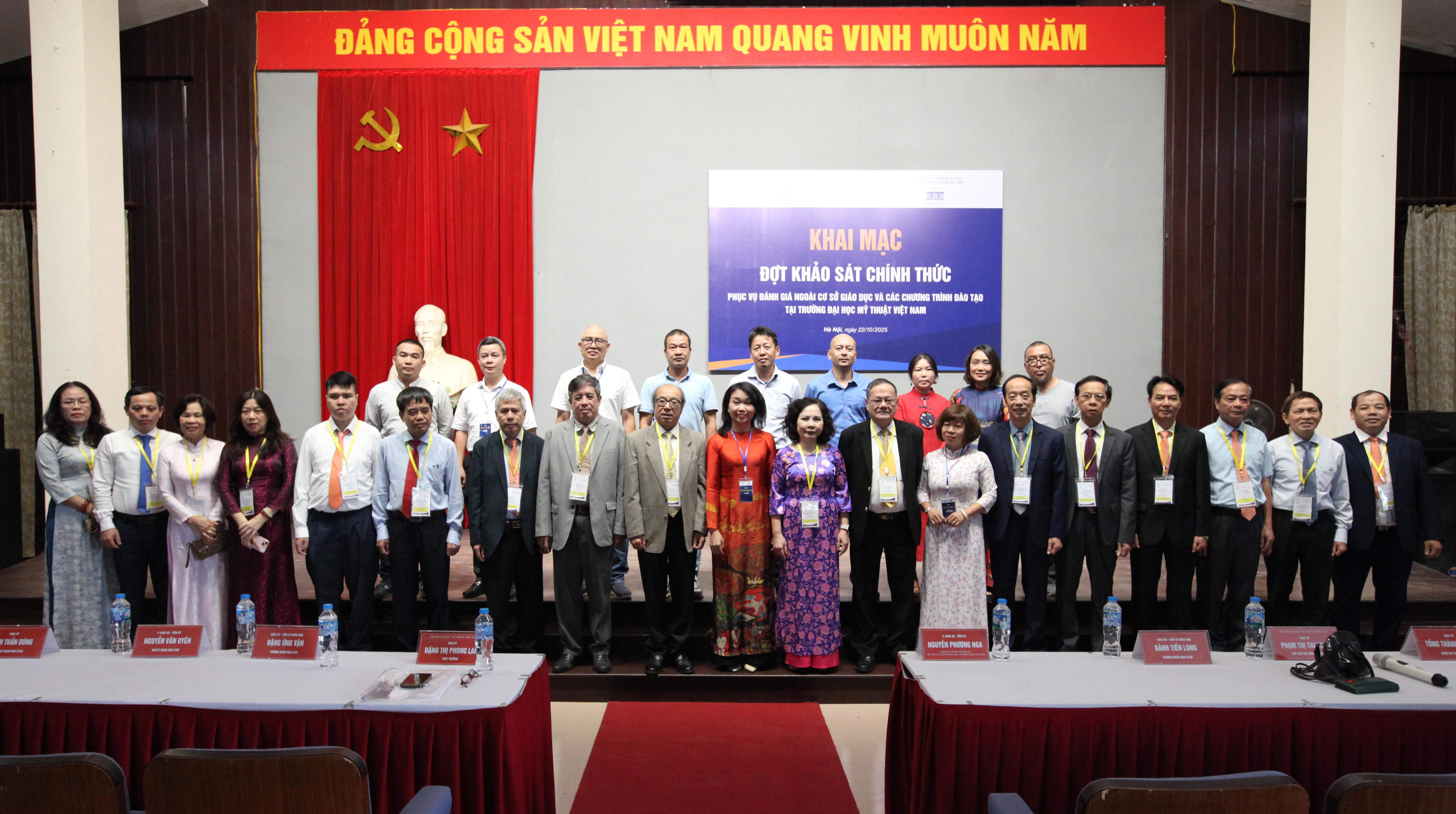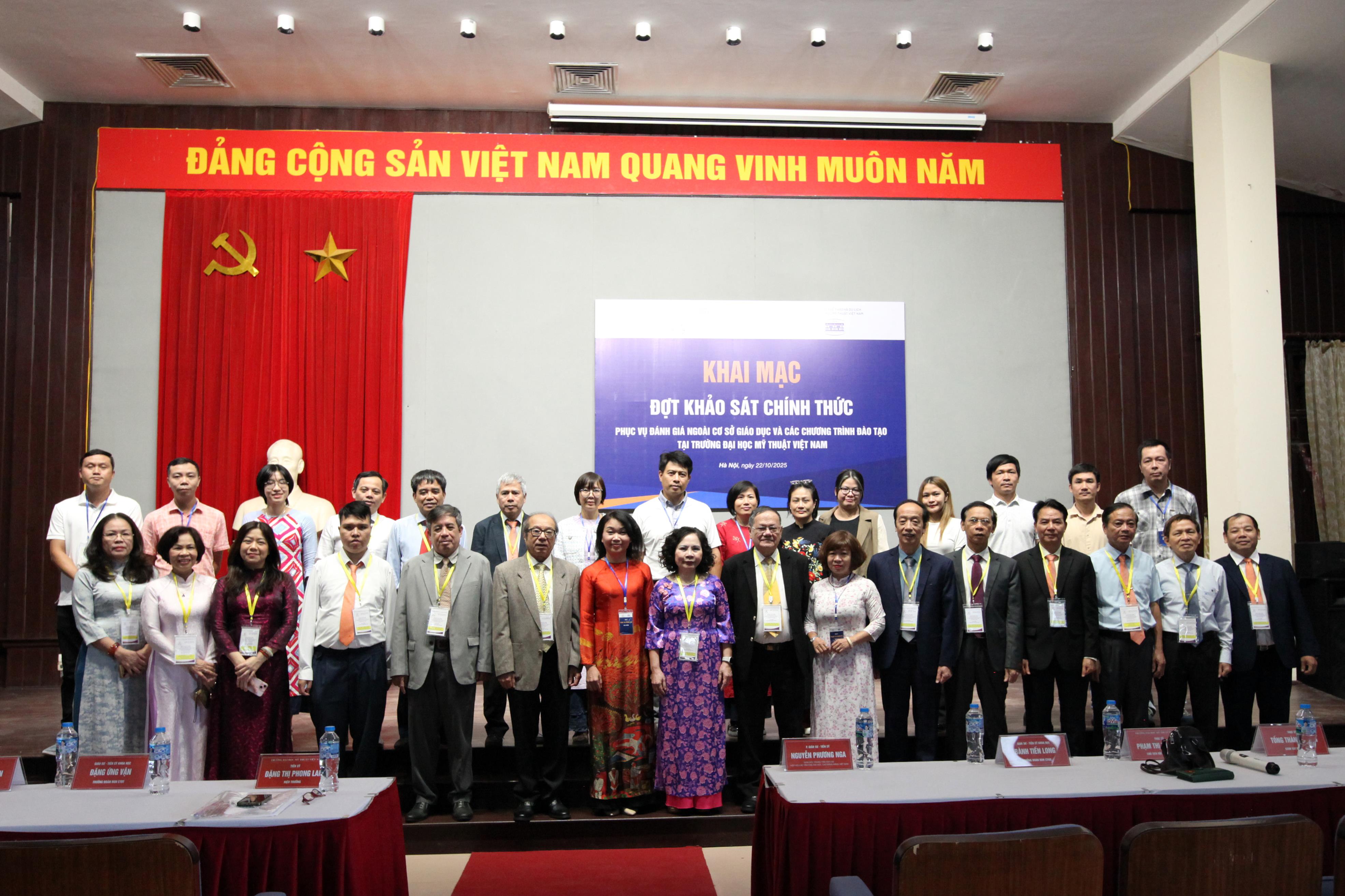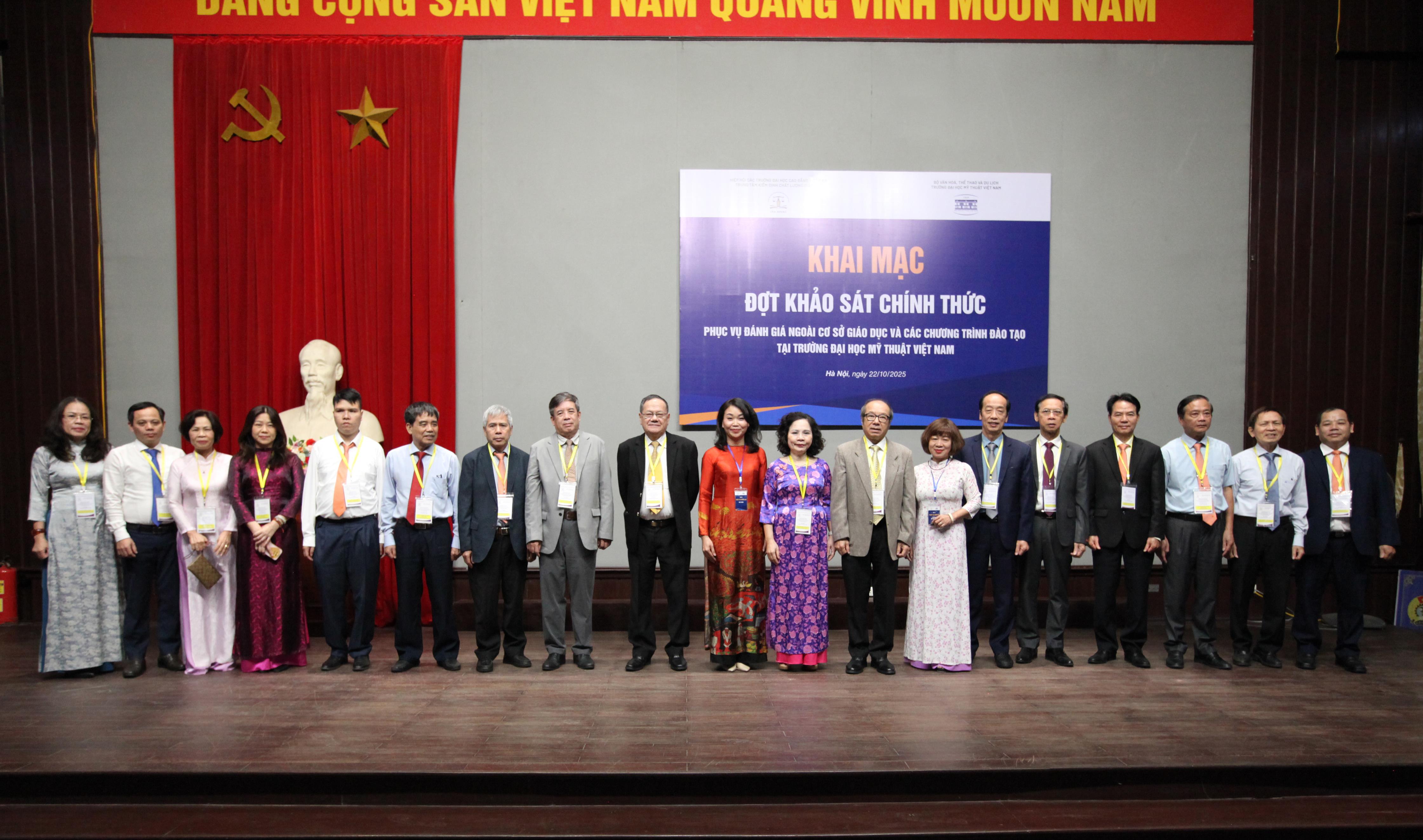 Sáng ngày 22/10/2025, Trường Đại học Mỹ thuật Việt Nam phối hợp với Trung tâm Kiểm định chất lượng giáo dục - Hiệp hội Các Trường Đại học, Cao đẳng Việt Nam tổ chức Lễ Khai mạc đợt khảo sát chính thức phục vụ đánh giá ngoài (ĐGN) Cơ sở giáo dục (CSGD) và các Chương trình đào tạo (CTĐT) tại trường Đại học Mỹ thuật Việt Nam. Các CTĐT được đánh giá lần này gồm 01 chương trình đào tạo chính quy trình độ thạc sĩ ngành Mỹ thuật tạo hình và 03 chương trình đào tạo trình độ đại học các ngành: Hội họa, Đồ họa, Điêu khắc.
