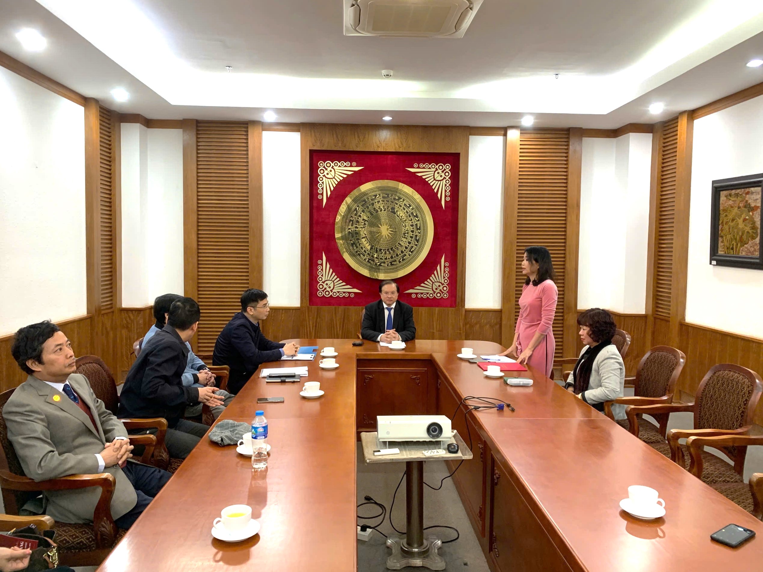 Các đồng chí tham dự buổi lễ chụp ảnh lưu niệm chúc mừng cùng Hiệu trưởng Trường Đại học Mỹ thuật Việt Nam - Tiến sĩ Đặng Thị Phong Lan.